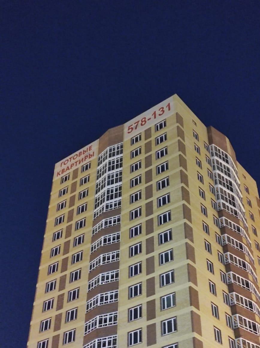 Материалы: Баннер, сетка. Монтаж на 22 этаже.
