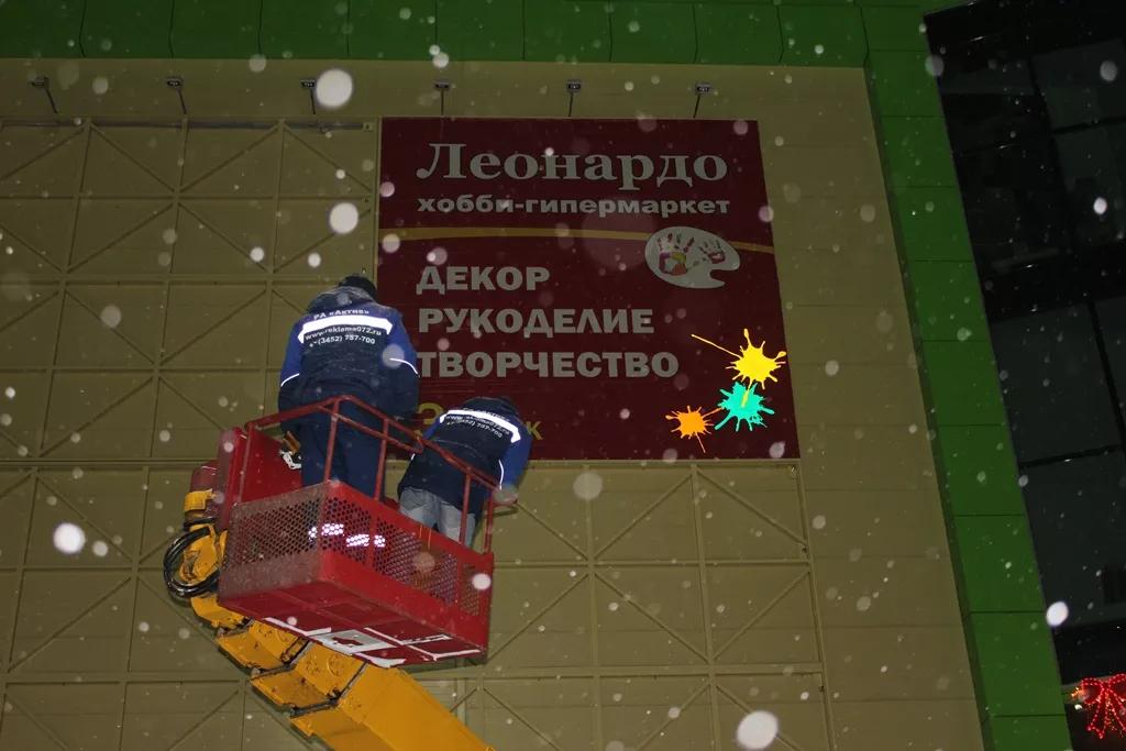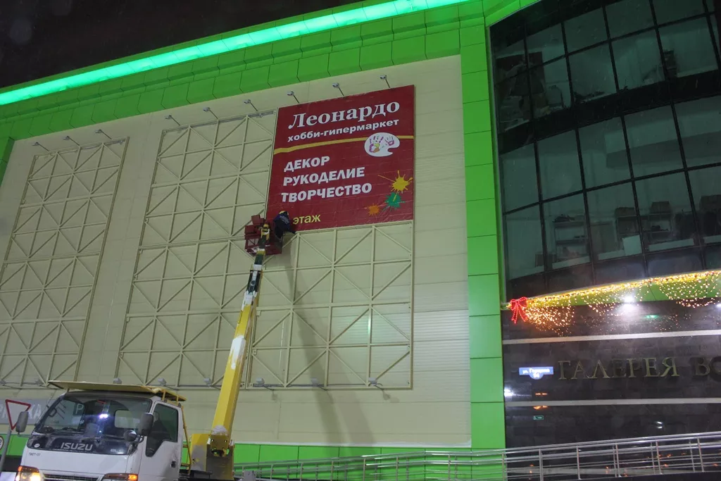 Например, наш Любимый клиент "Леонардо" заказал не только дизайн и изготовление баннера, но ещё и его монтаж.