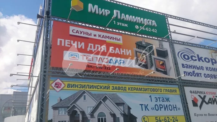 Смонтирован баннер "Печи для бани" 6 на 9 метров на ТК "Орион" в {town:pr}